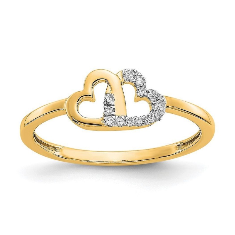 Anello a doppio cuore in oro 10 carati con diamanti da 2 mm, misura 7,00, ideale come regalo per lei